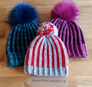 Warum also nicht drei Bommelmützen stricken? Mich hats voll erwischt - ich bin im Mützenfieber!