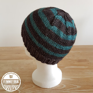 Gibt es nicht. Ich habe einfach drauflos gestrickt. Leider hatte ich nicht genug Wolle um das zweifarbige Patentmuster des Ponchos aufzugreifen. Also habe ich einfach Streifen gestrickt.